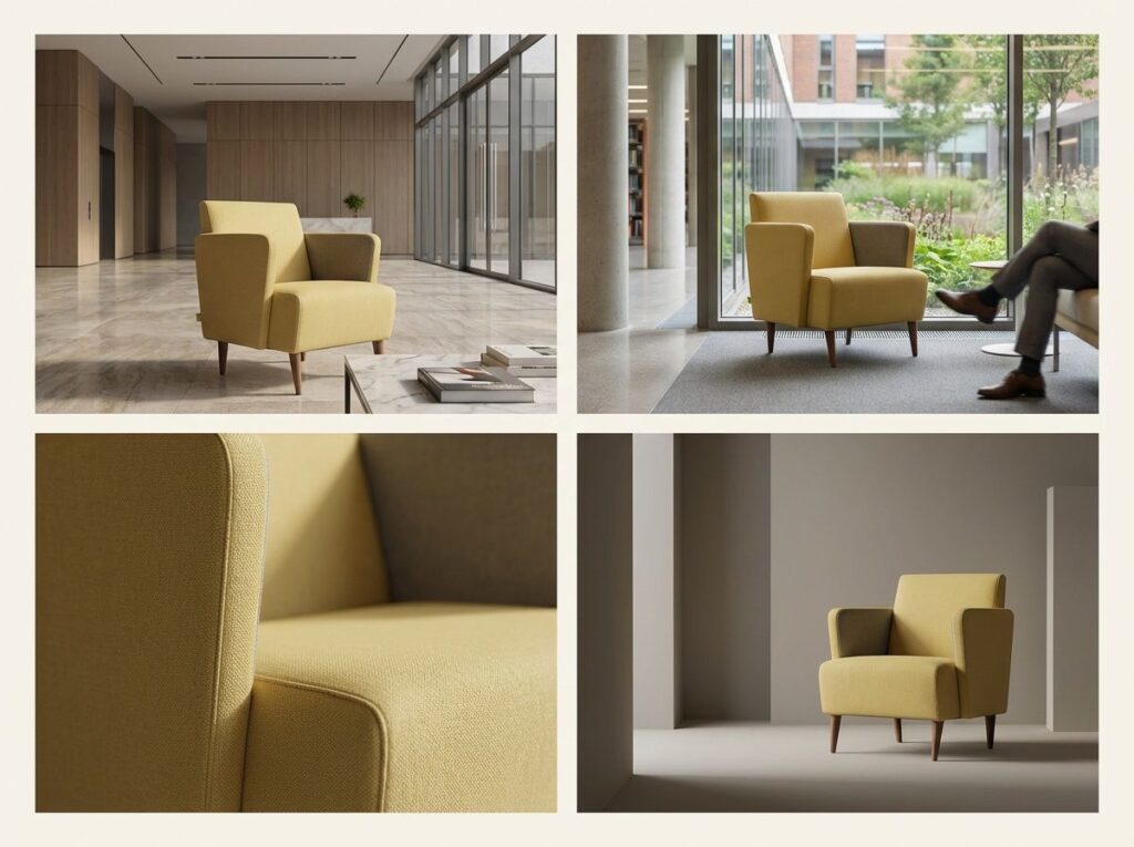 The Beta is a lovely small chair. The recessed arms and timber cone legs add to its retro look. Ideal for small spaces, open office areas or home office seating.