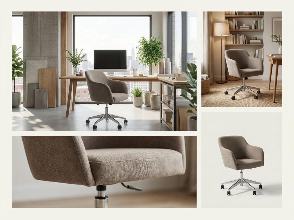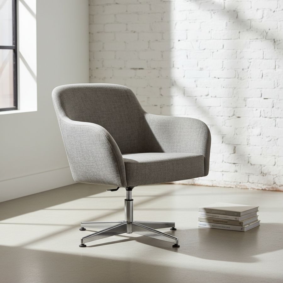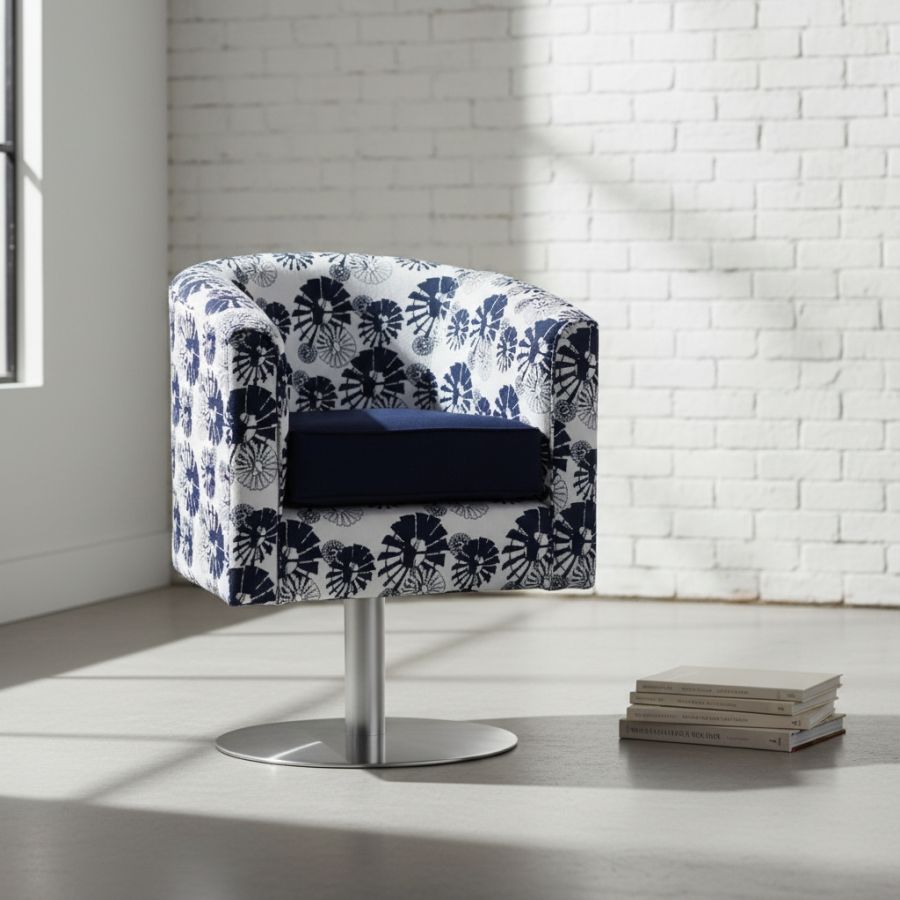 Enlarged version with lower seat height suitable for lounge or occasional use. Polished Aluminium 4 star base with swivel and gas height adjustment.