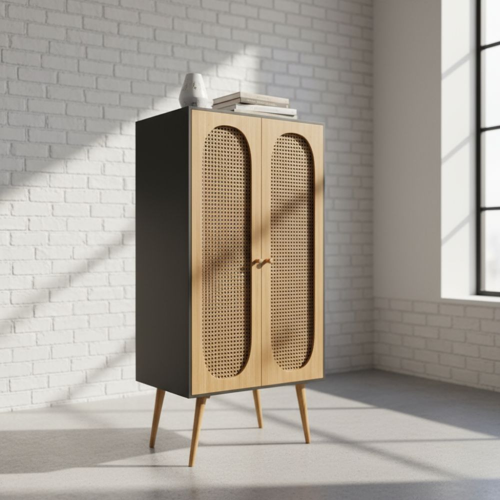 The Draw Pedestal includes solid oak drawers with rattan inlay, solid oak legs with non-marking glides. It features knurled solid brass knobs and an Osmo 2K oil finish that enhances durability and natural character.