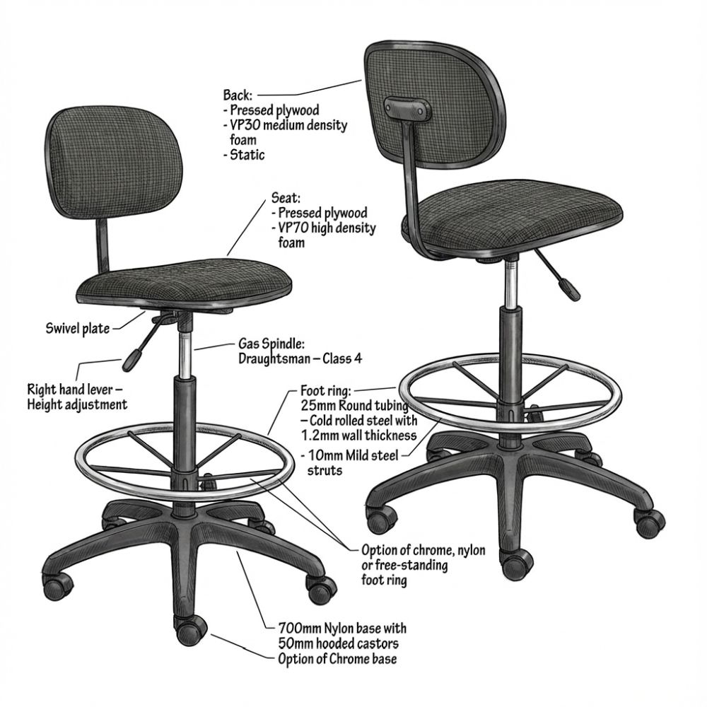 Base: 700mm Nylon base with 50mm hooded castors. Option of Chrome base.