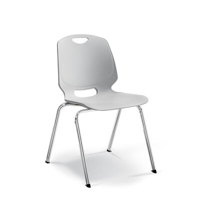 High specification chair with polyprop shell on scratch resistant Chrome frame or lower price Silver epoxy frame. BIFMA tested. Optional upholstered seat panel. Stackable 8 high.