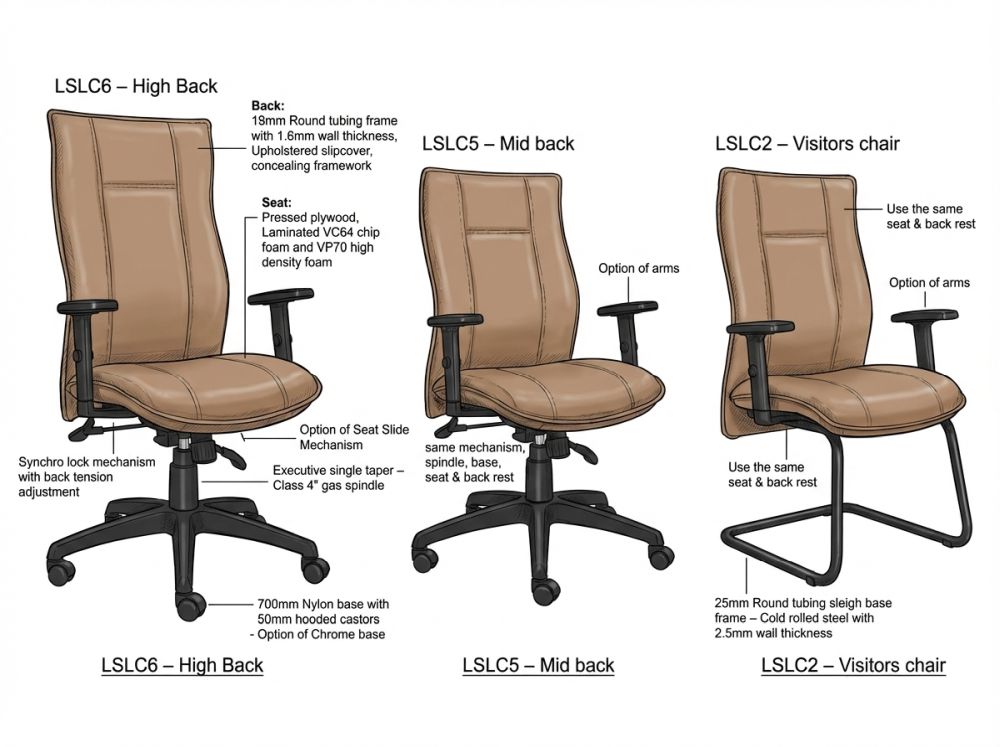 | Chair Type | High Back, Mid Back, Side Chair |