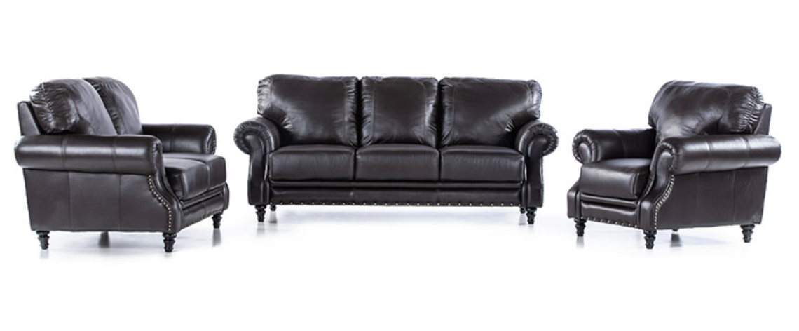 The Malo is a distinctive suite with a timeless look. High back rests and deep seats provide the comfort factor. It features solid wooden feet, twin needle stitching & antique brass studs.