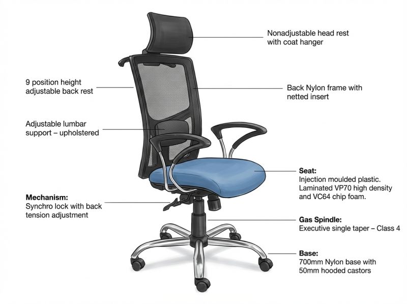 | Chair Type | High Back, Mid Back, Visitors |
