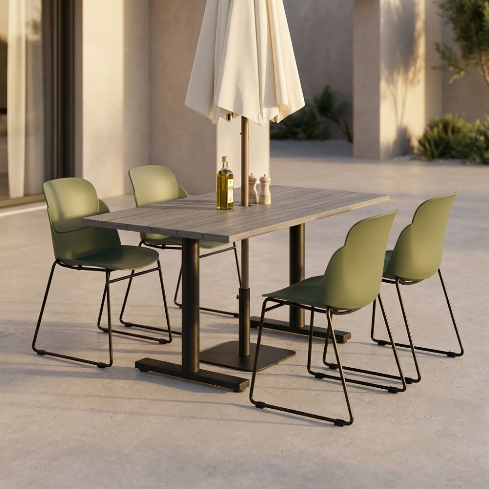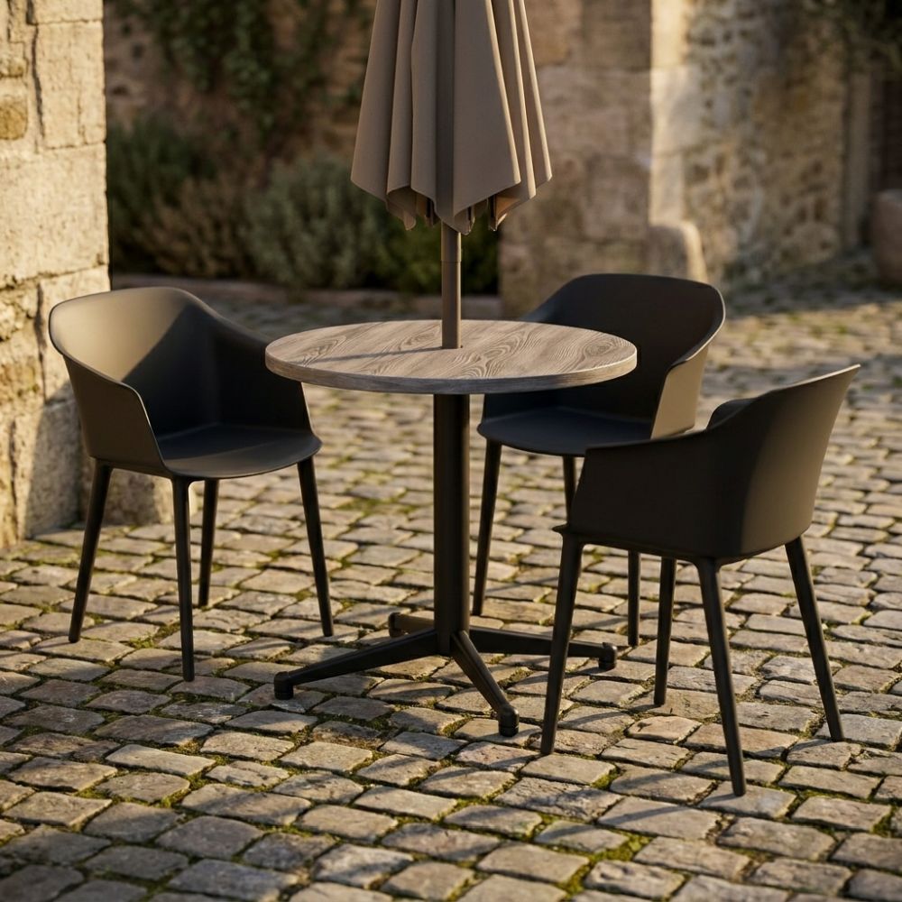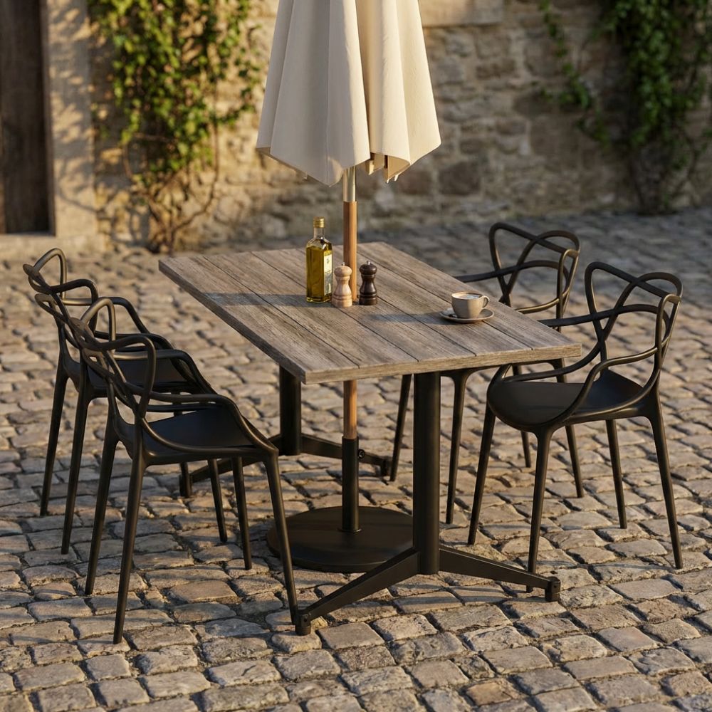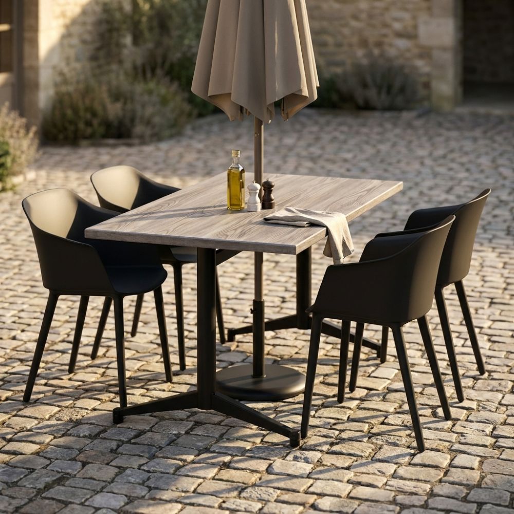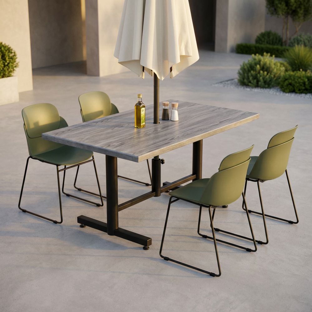 Stabiliza™ stands apart through its intelligent, self-adjusting stability—designed specifically to eliminate the frustration of uneven surfaces in real-world environments. At its core is a precision-engineered mechanism that allows the base to automatically adapt to floor irregularities, ensuring a firm, wobble-free table without the need for manual adjustment. This makes it particularly valuable in high-traffic hospitality and outdoor settings where surfaces are rarely perfect. Combined with a durable, powder-coated steel construction and a clean, understated aesthetic, Stabiliza™ delivers both functional reliability and refined simplicity—quietly solving a common problem with confidence and consistency.