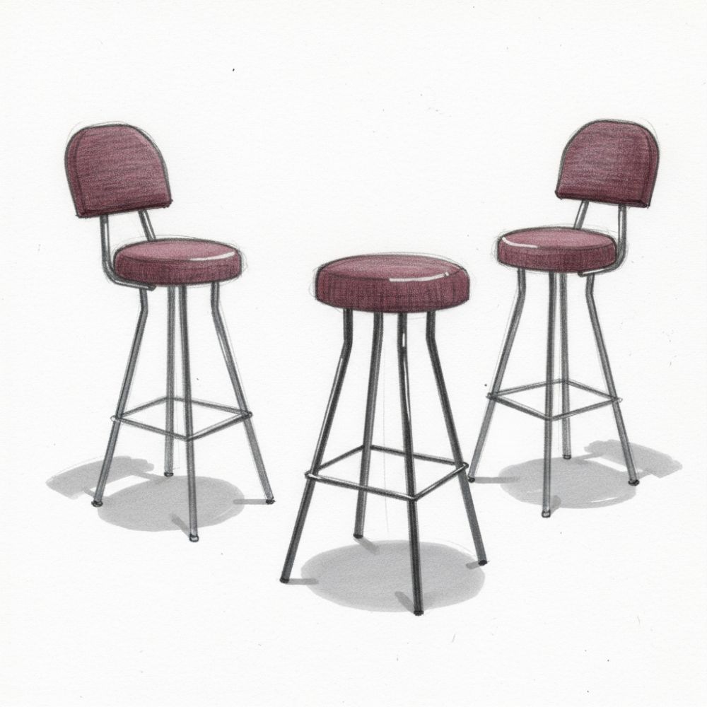 Durable elevated chairs with integrated footrings, designed for comfort and stability at raised counters during extended shifts.