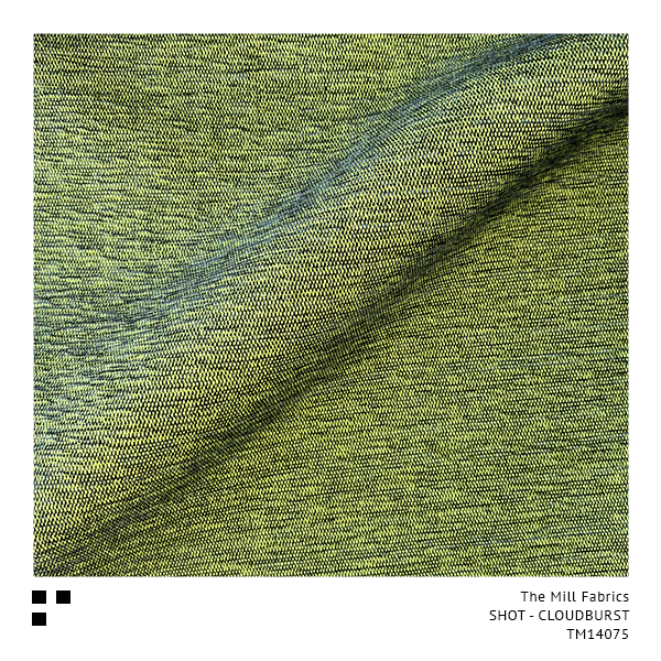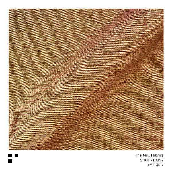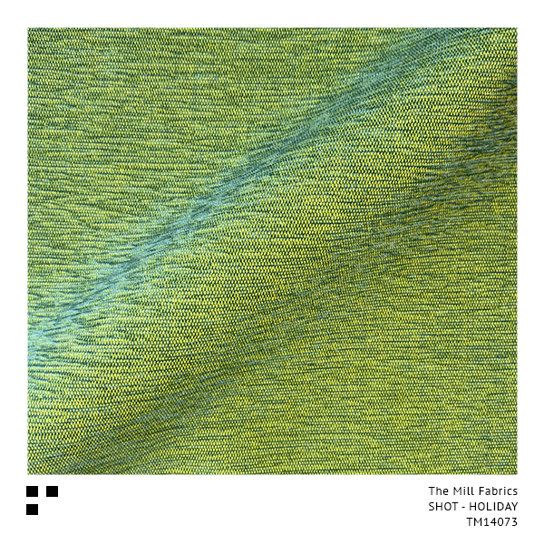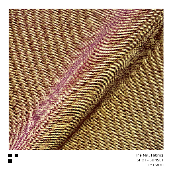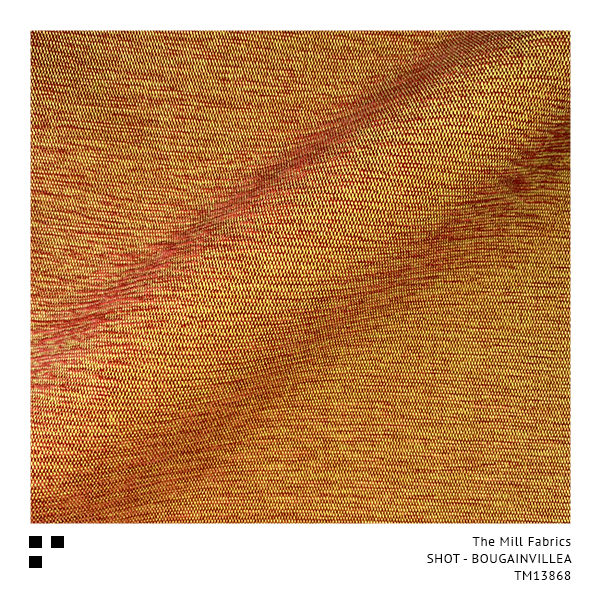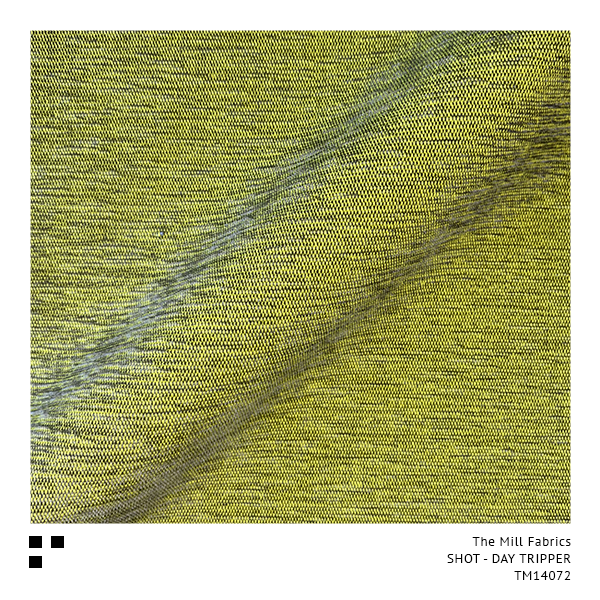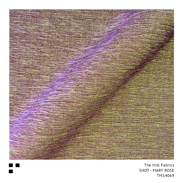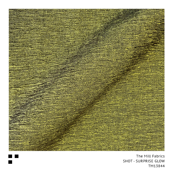 “SHOT” is the description of a fabric surface effect created by weaving two different coloured yarns together, one colour in the opposite direction to the other, showing a striking contrast between the two. The Mill’s Chartreuse Yellow base weave shines through each and every one of our exciting 30 colourways, giving a special glow similar to a traditional Silk Taffeta.